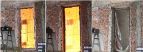 高强度单片玻璃作外墙在火灾发生时的情形: