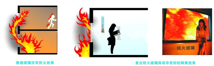 - 隔热型复合灌浆防火玻璃为双层玻璃中间灌注高透明防火液胶合工艺,分Ⅰ级、Ⅱ级、Ⅲ级,普通Ⅰ级可防烈火90分钟, Ⅱ级 60分钟, Ⅲ级 45分钟,如防火时间要增加,则需加厚。常用于商场隔断,电脑房墙体、档案室和舞厅等公共场所。我企业生产的隔热型复合灌浆防火玻璃有国家权威机构认证。
